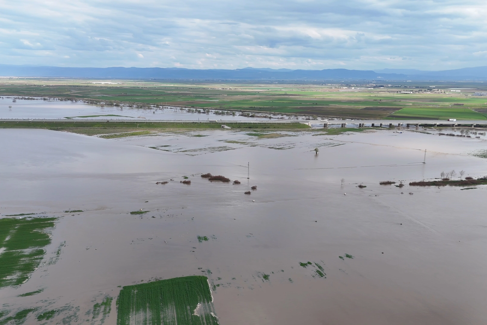 Yağışların ardından debisi yükselen dereler, yataklarından taşarak yol kenarlarına kadar ulaştı. Havadan alınan görüntülerde, bölgedeki çok sayıda ekili arazinin tamamen suyla kaplandığı ve tarımsal üretimin bu durumdan olumsuz etkilendiği gözlendi. Su seviyesinin bazı noktalarda kritik seviyeye ulaşması nedeniyle kırsal yollarda ulaşım zorlaştı.