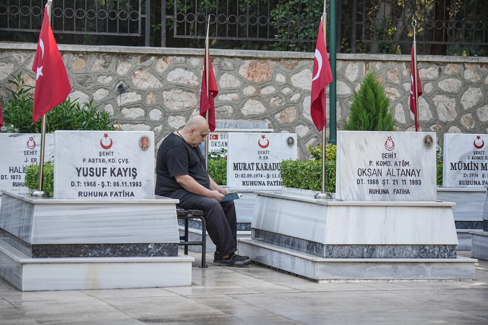 Bursa'da bayram sabahı, şehit yakınları için buruk bir şekilde başladı. Bayram namazının ardından ellerinde çiçeklerle Pınarbaşı Garnizon Şehitliği’ne gelen aileler, evlatlarını, eşlerini ve kardeşlerini dualarla andı. Kur’an-ı Kerim okuyarak manevi bir atmosfer oluşturan aileler, mezar taşlarını temizleyip kabirlere çiçekler bıraktı.
