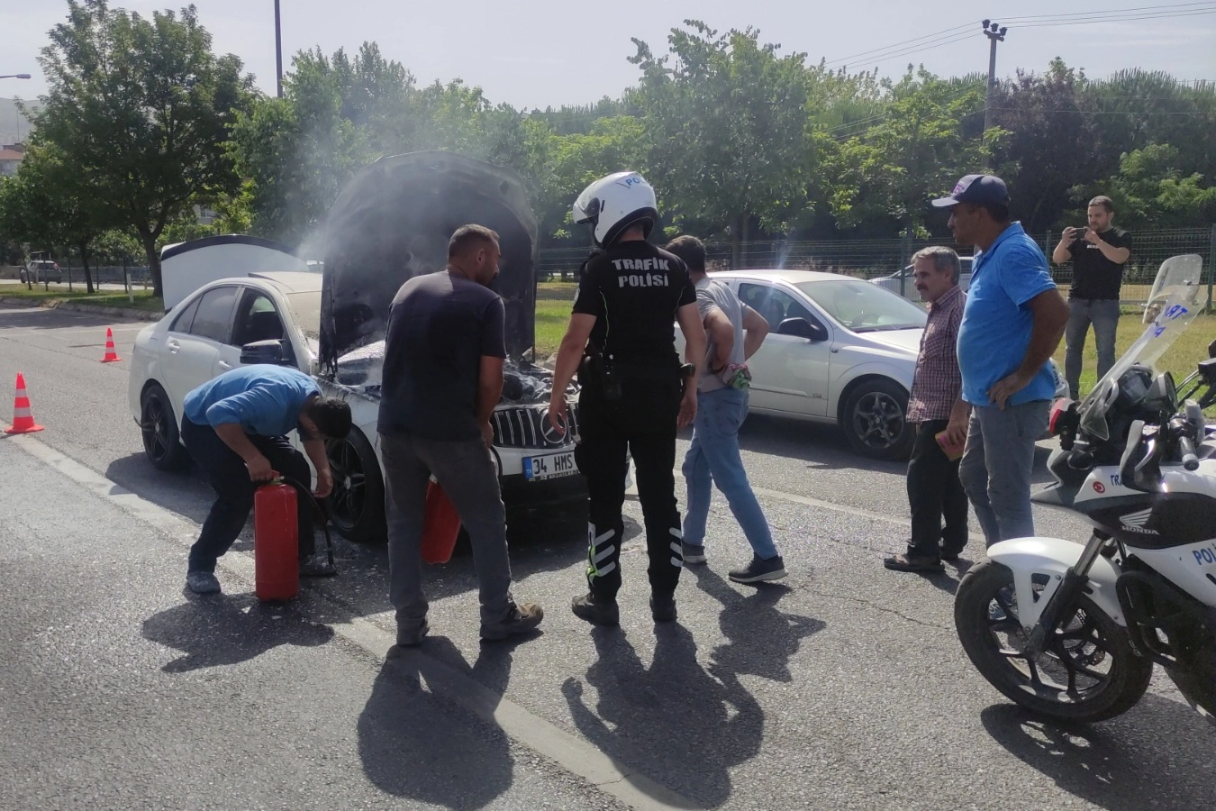 Orhangazi ilçesi Yalova-Bursa kara yolu Yeniköy trafik ışıklarında, Mehmet Kaya idaresindeki 34 HMS 004 plakalı otomobilin motor bölümünden dumanlar yükselmeye başladı.