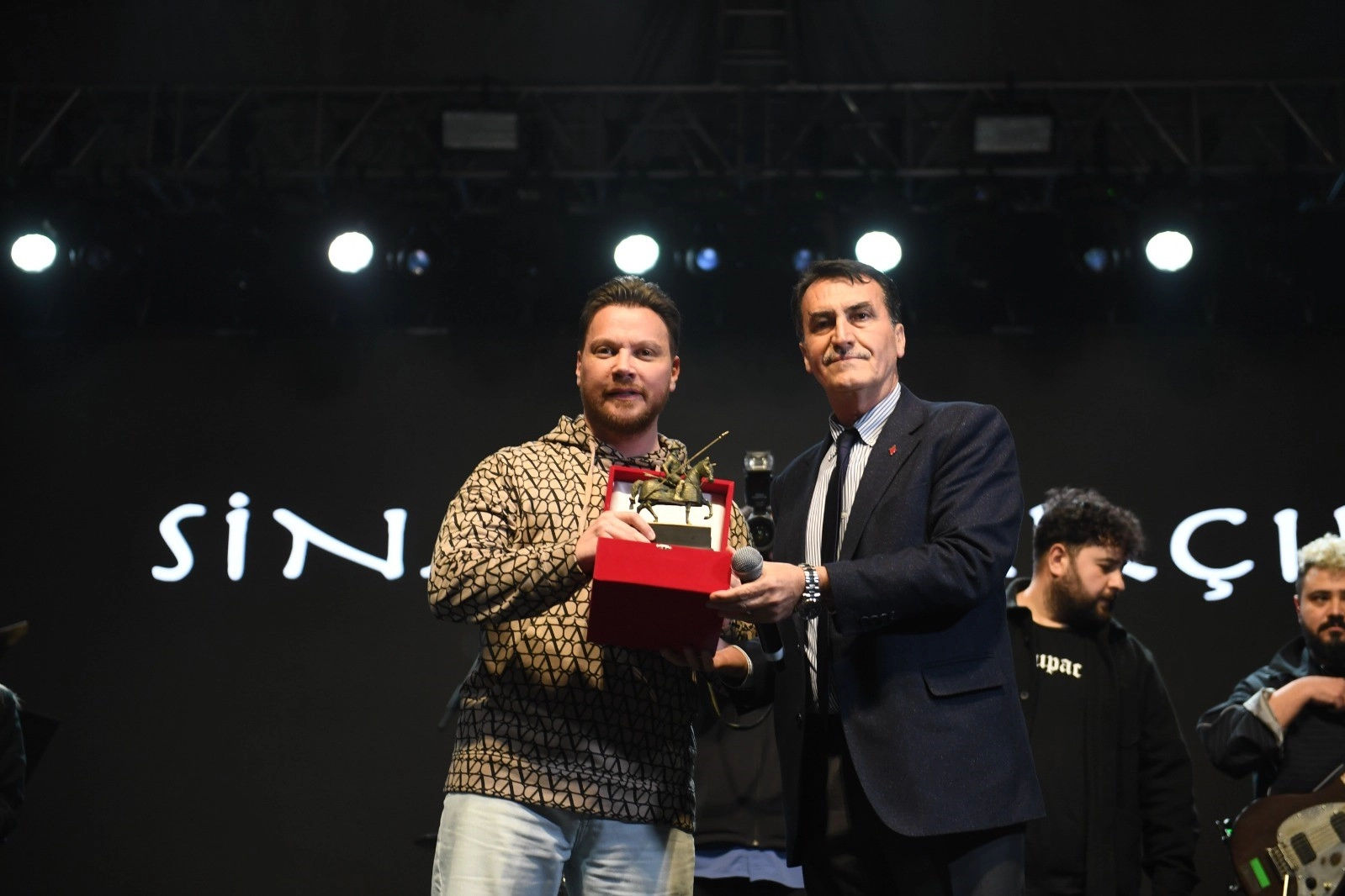 Sahneye çıkarak vatandaşları selamlayan Osmangazi Belediye Başkanı Mustafa Dündar, ünlü şarkıcıya Osman Gazi biblosu hediye etti.