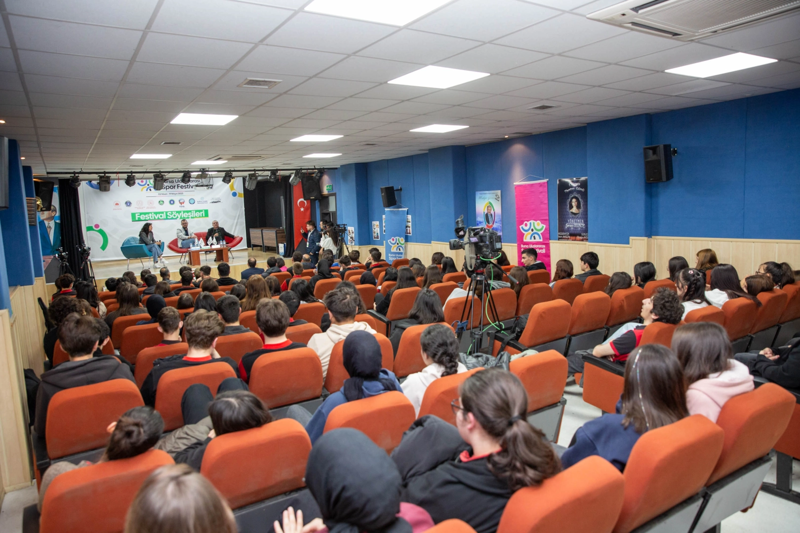 Festivalin kültürel ayağını oluşturan söyleşi programlarının son adresi Yıldırım Mesleki ve Teknik Anadolu Lisesi oldu. Moderatörlüğünü Mutlu Ulusoy’un üstlendiği etkinlikte Tümer ve Hoş, spor medyasının perde arkasına dair deneyimlerini öğrencilerle paylaştı. Sporun iletişim boyutundan kariyer hikâyelerine kadar geniş bir yelpazede sohbet edilen buluşmada, gençlerin soruları da yanıt buldu.