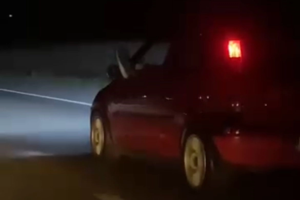 Görüntülerde, otomobilin yüksek hızla ilerlediği ve sürücünün bu rahat tavırlarla yolculuğuna devam ettiği açıkça görülüyor.