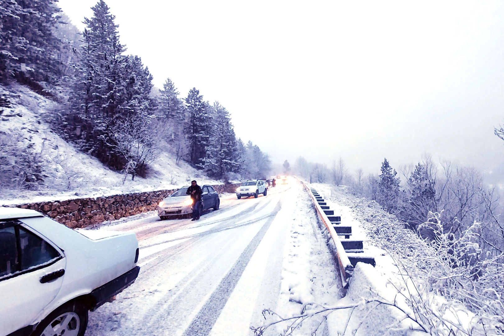 Bursa'nın Orhaneli ilçesinde kar yağışı nedeniyle kente bağlanan kara yolunda ulaşımda aksamalar yaşanıyor.