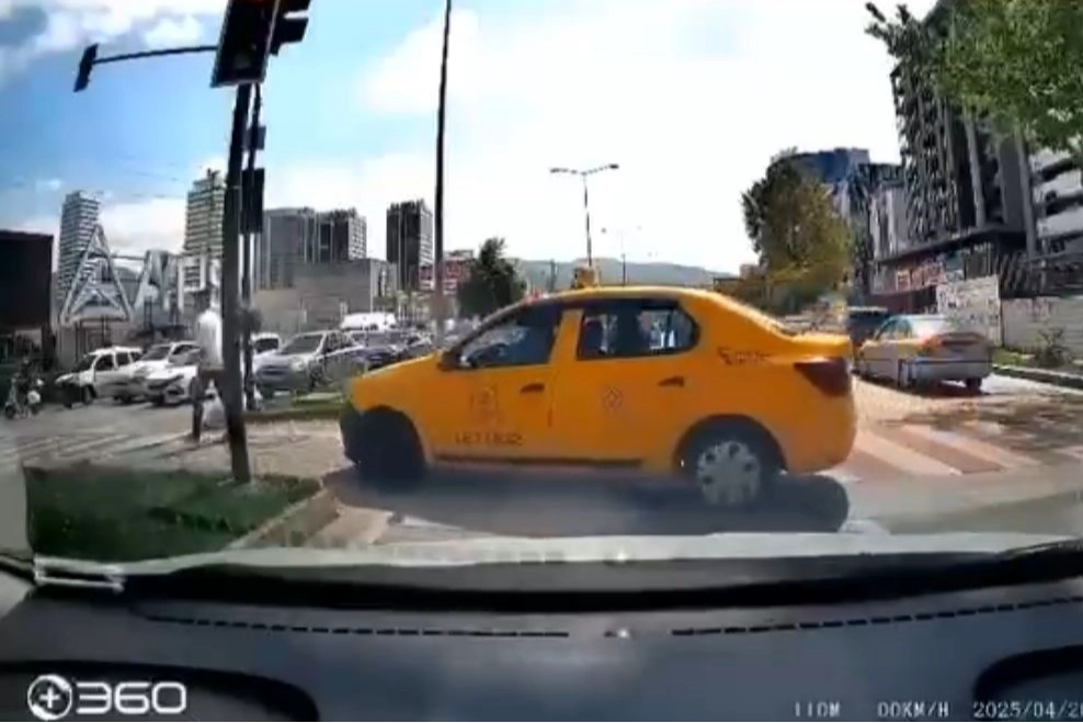 Olay anı, ışıklarda bekleyen bir aracın araç içi kamerası tarafından kaydedildi. Görüntülerde, taksi şoförünün yaya geçidinde ilerleyen vatandaşları umursamadan geçmeye çalıştığı anlar net bir şekilde yer aldı.