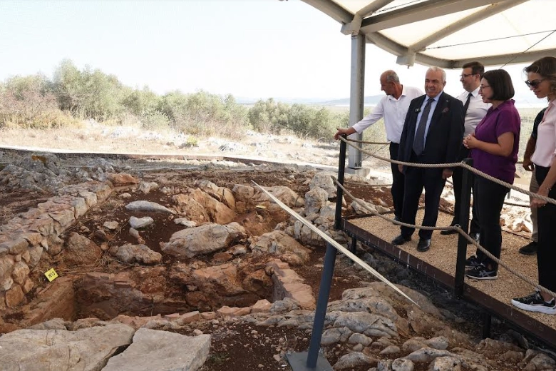Kazı çalışmalarını yerinde inceleyen Nilüfer Belediye Başkanı Şadi Özdemir, Bursa Uludağ Üniversitesi Fen Edebiyat Fakültesi Arkeoloji Bölümü Öğretim Üyesi Prof. Dr. Derya Şahin’in başkanlığında bu yıl 22 Temmuz’da başlatılan kazı çalışmalarını yerinde inceledi.