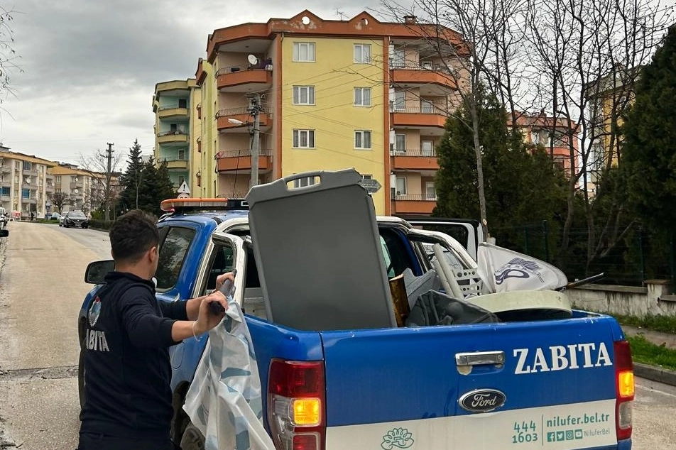 Nilüfer Belediyesi Zabıta Müdürlüğü ekipleri, hem halk sağlığını tehdit eden hem de görsel kirliliğe yol açan unsurları ortadan kaldırmak için merkez mahallelerde kapsamlı bir denetim yaptı.