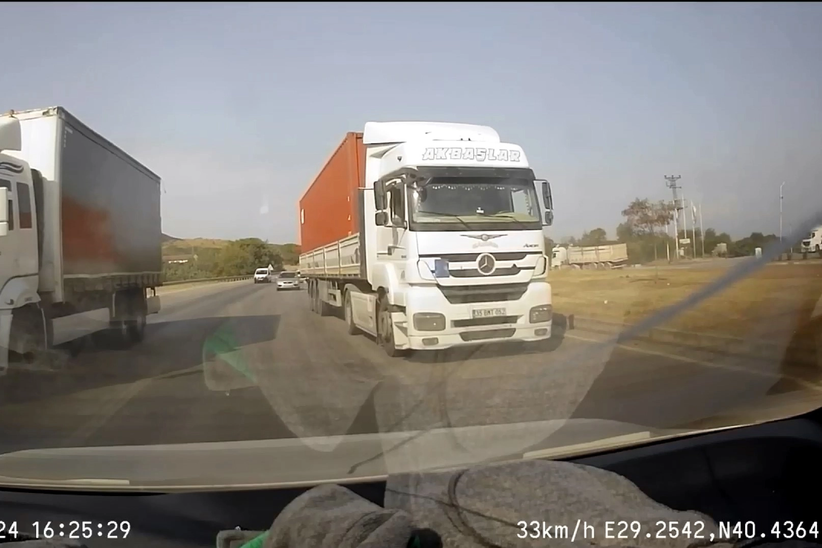 Görüntüler, tırın tehlikeli manevralarını ve diğer araçların tepkilerini net bir şekilde ortaya koydu.