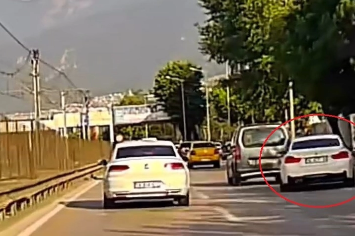 Bursa'nın en işlek güzergâhlarından biri olan Acemler-Kültürpark hattında, trafik kurallarını hiçe sayan bir sürücü, tehlikeli hareketleriyle yürekleri ağza getirdi.