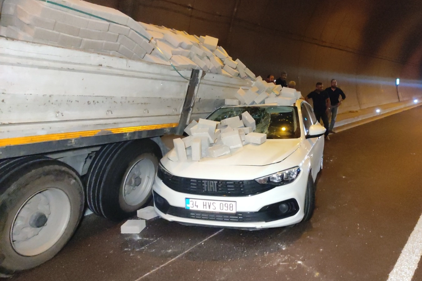 İstanbul-İzmir Otoyolu, Orhangazi Tüneli'nde, Bursa'dan İstanbul istikametine giden Mehmet Ö. (65) idaresindeki 43 HZ 820 plakalı parke taş yüklü TIR'ın hava hortumu tünel içindeyken arızalandı.