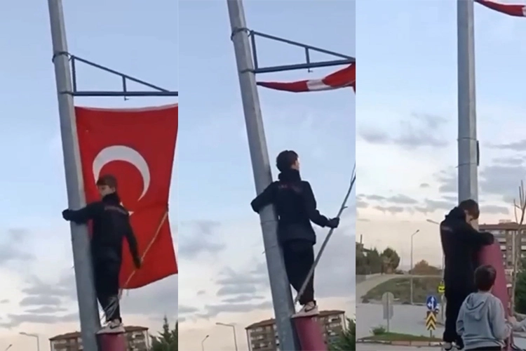 Bursa sokaklarında oynayan üç çocuk, direkteki Türk bayrağının rüzgâr yüzünden katlandığını fark etti.