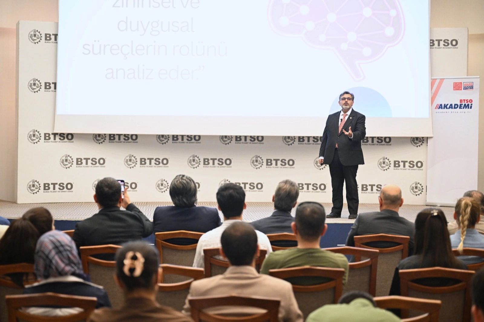Bursa Ticaret ve Sanayi Odası (BTSO) Akademi, önemli bir etkinliğe ev sahipliği yaptı. İngiltere’nin prestijli eğitim kurumlarından Cambridge Üniversitesi Öğretim Üyesi Prof. Dr. Ahmet Sakarya, “İhracat Psikolojisi ve Algı Yönetimi” konulu bir seminer gerçekleştirdi. Etkinliğe BTSO Yönetim Kurulu Üyesi Hakan Batmaz, meclis üyeleri ve çok sayıda iş dünyası temsilcisi katıldı.