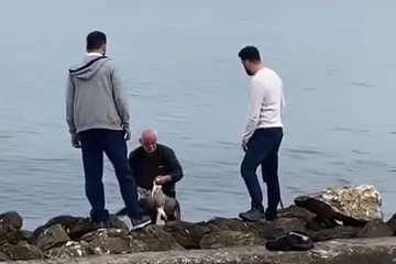 Martının su üzerinde çaresizce çırpındığını gören bir vatandaş, tereddüt etmeden kıyafetleriyle birlikte denize girerek kuşu güvenli bir alana taşıdı.
