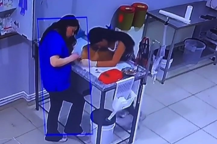 Köpeğin ayaklarından tutarken tansiyonu düşen kadın aniden yere yığıldı. Olayın ardından veteriner kliniğinde kısa süreli bir telaş yaşansa da, kadının bilinci kısa sürede yerine geldi.