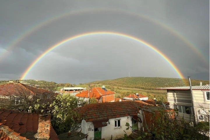 Bursa'da gün boyu etkili olan yağış sonrası Bursa'nın çeşitli bölgelerinden görülen gökkuşağı, ilgi odağı oldu.