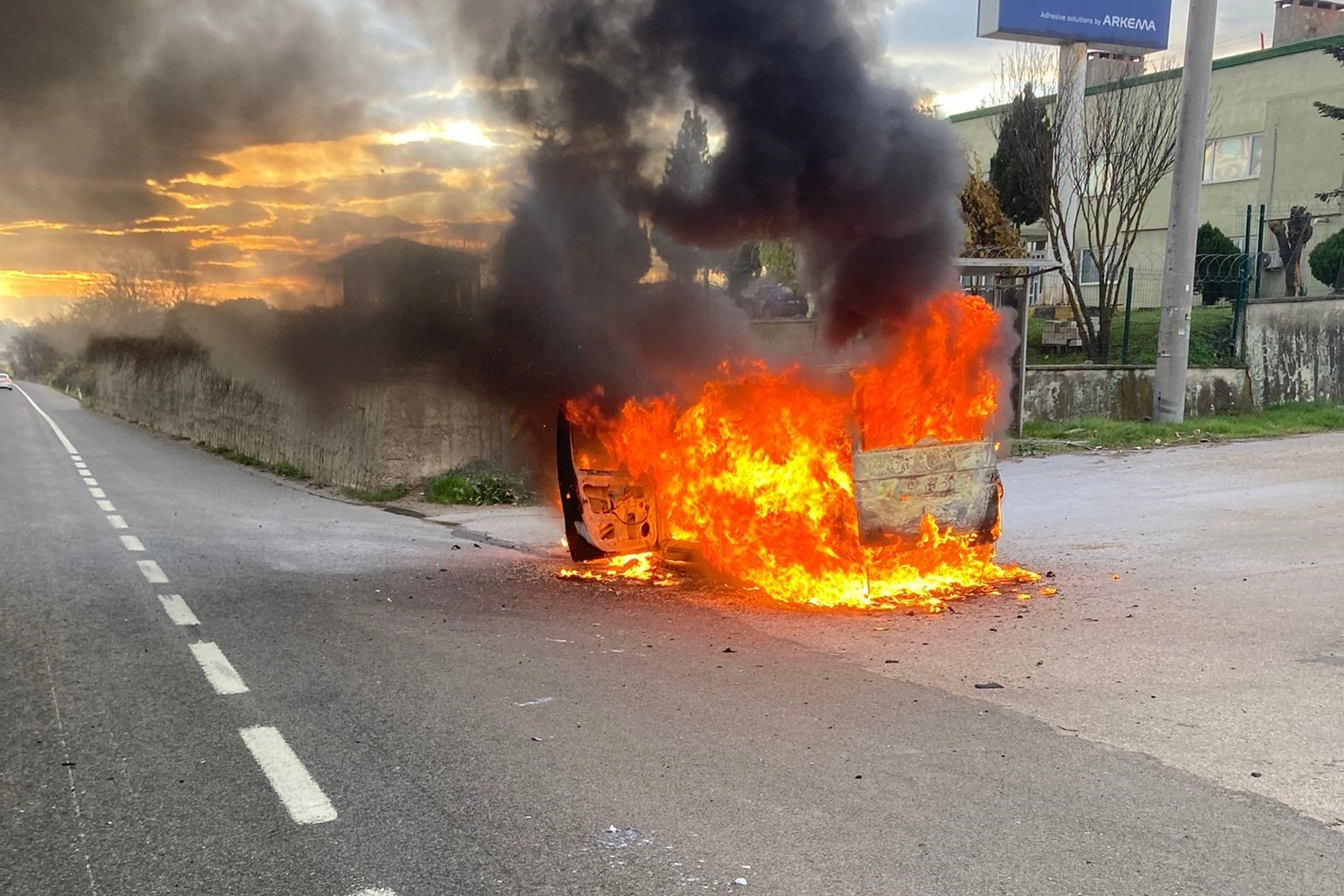 KISA SÜREDE ALEV TOPUNA DÖNDÜSürücünün uyarısının ardından dakikalar içinde otomobil alev aldı. Patlamaların da yaşandığı yangında araç, kullanılmaz hale gelirken, olay çevrede büyük panik yarattı.