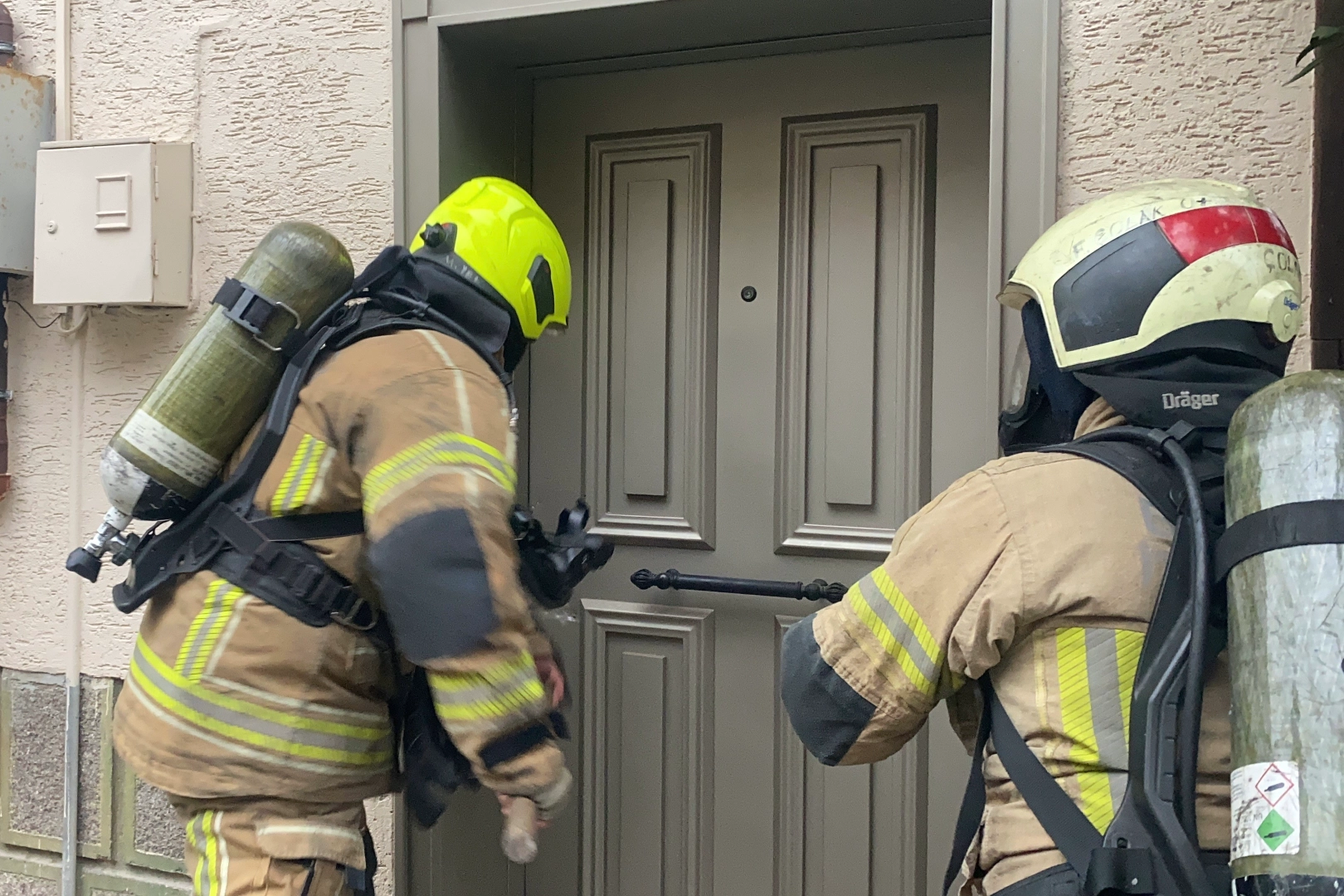 Ev sahibinin evde olmaması nedeniyle itfaiye ekipleri kapıyı balyozla kırarak açtı.