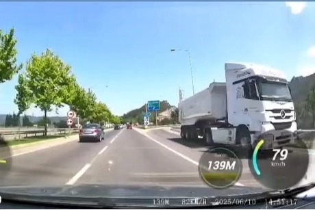 TIR’ın ters yönde ilerlemesiyle birlikte, yoldaki diğer sürücüler kısa süreli panik yaşadı. O sırada yolda seyir halinde olan bir otomobilin araç kamerası yaşanan tehlikeli anları kaydetti. Görüntülerde TIR’ın ters yönde ilerlediği görüldü.