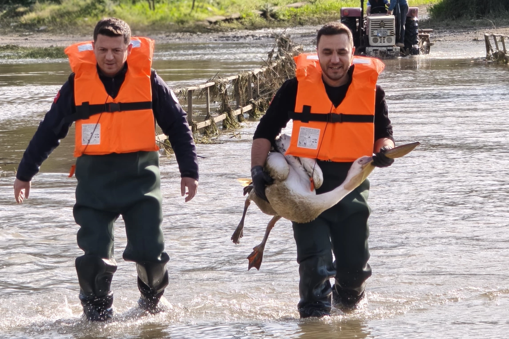 Zor şartlar altında yapılan müdahalede, çalılıklar arasında sıkışan yaralı pelikan dikkatli şekilde kurtarıldı.