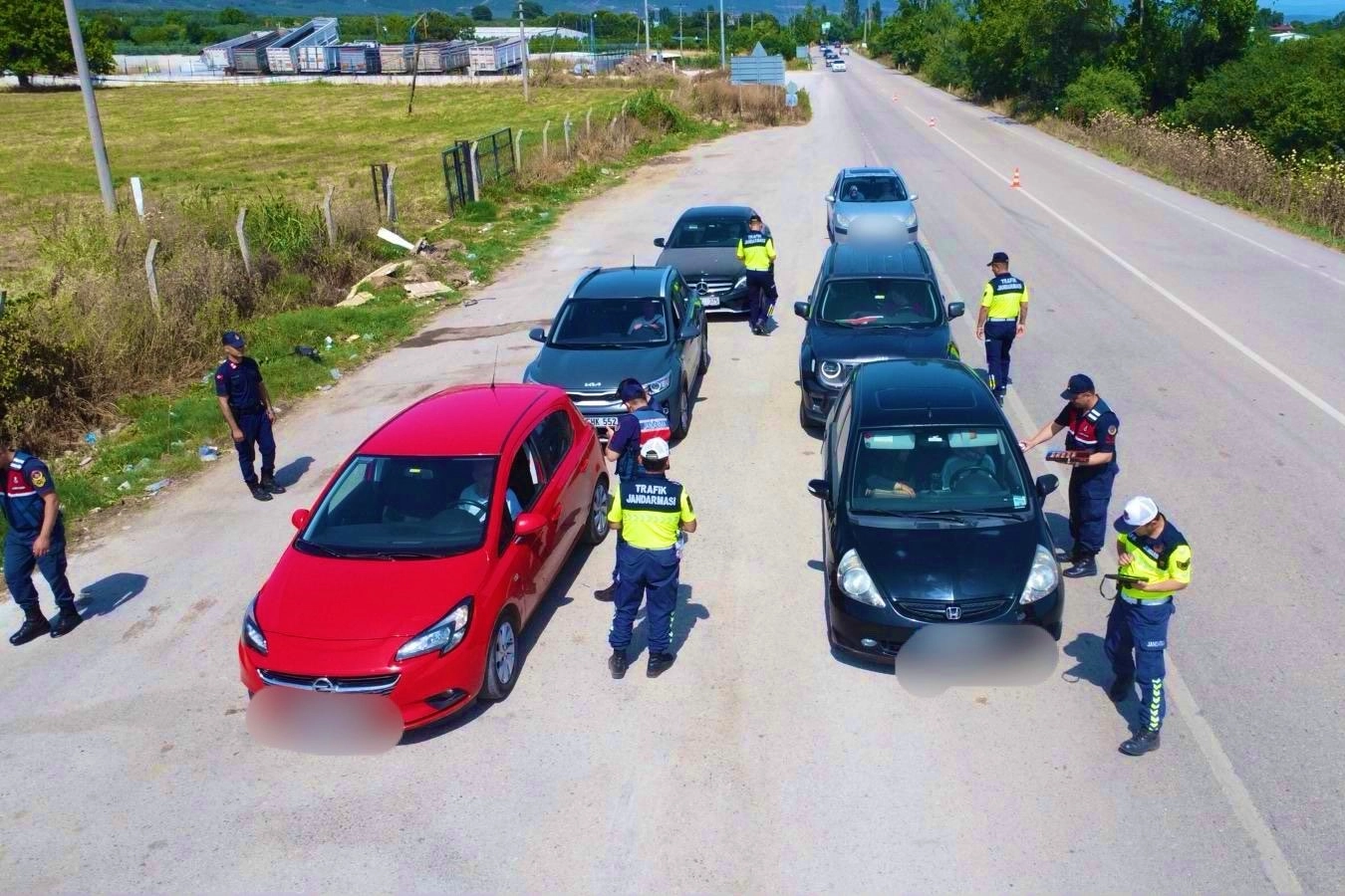 Bursa İl Jandarma Komutanlığı trafik timleri, Kurban Bayramı'nın ilk iki gününde hem havadan dron desteğiyle hem de karadan yoğun trafik denetimleri düzenledi.