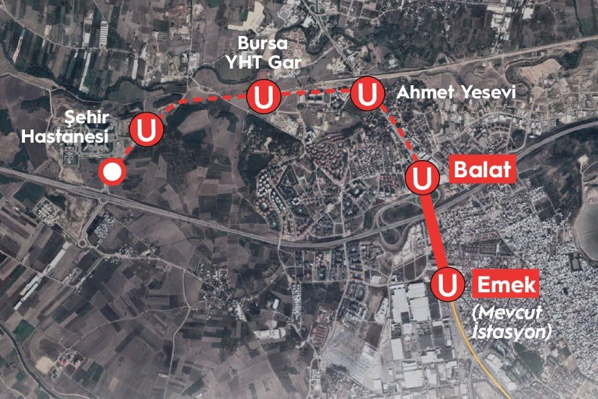 Toplamda 6.1 kilometre uzunluğa sahip olacak hat, 4 istasyondan oluşacak. Raylı sistem hattı sayesinde Bursa’nın çeşitli noktalarından Şehir Hastanesi’ne kesintisiz ve konforlu ulaşım mümkün hale gelecek.