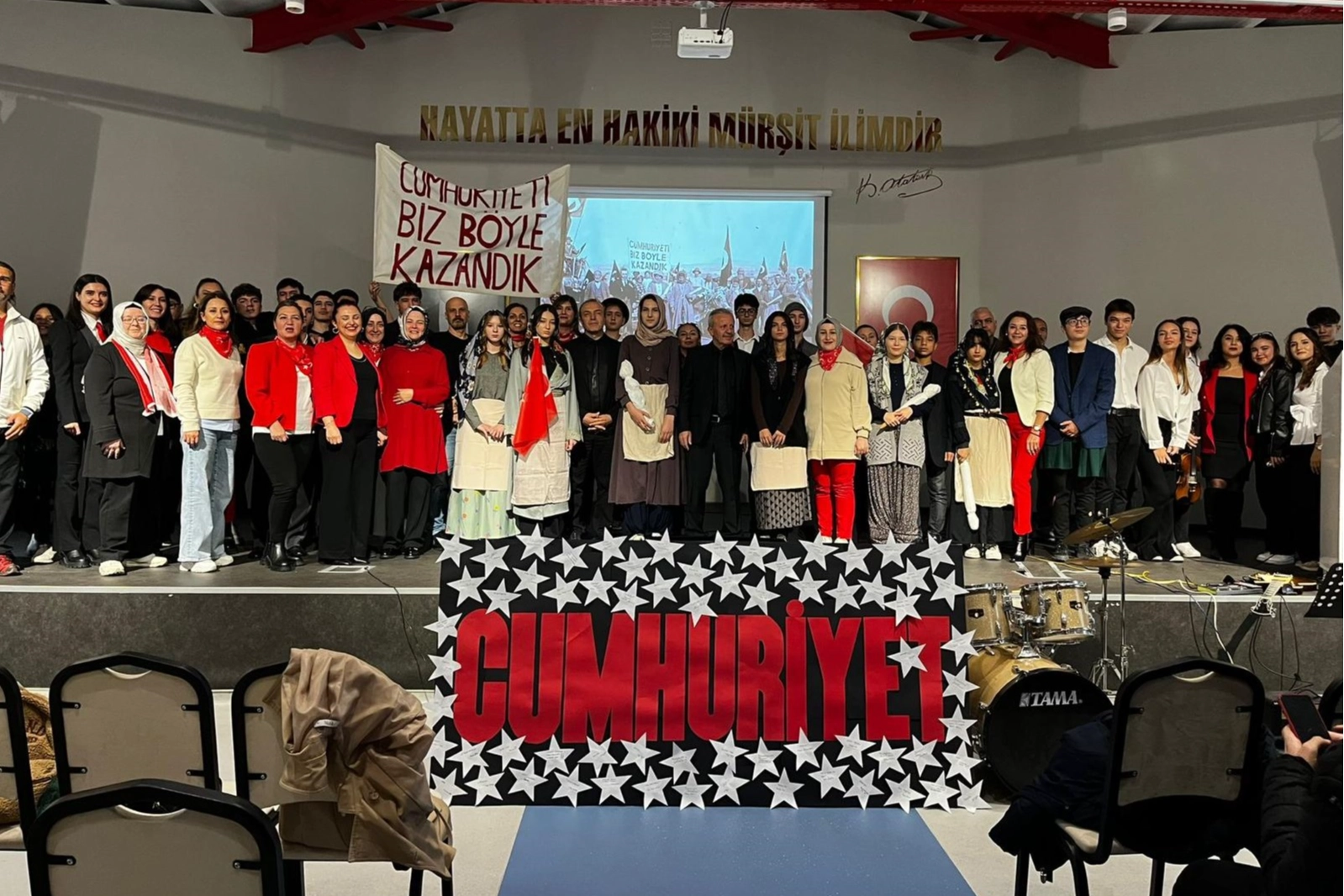 Cumhuriyet Bayramı coşkusunun doyasıya yaşandığı program, öğrencilerin hazırladığı sahne gösterileri ve müzik dinletisiyle sona erdi. Katılımcılar, gençlerin Cumhuriyet sevgisini sahne performanslarıyla bir kez daha hissetti.