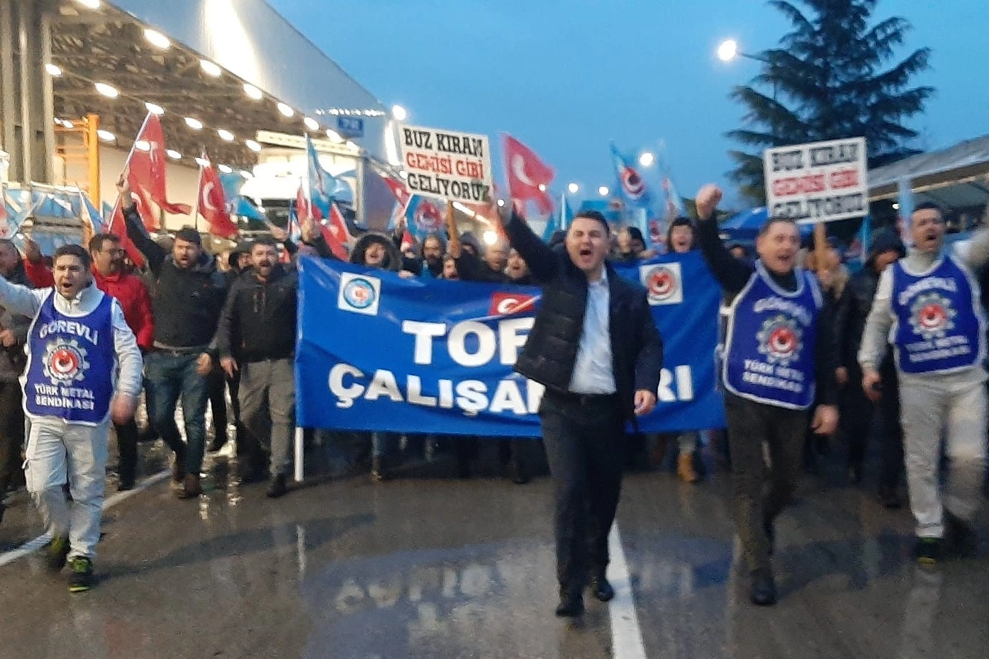 Türk Metal Sendikası ile MESS arasında süren toplu iş sözleşmesi görüşmelerinde anlaşma sağlanamaması üzerine Türk Metal Sendikasının aldığı grev kararı Tofaş Otomobil Fabrikasında ilan edildi.