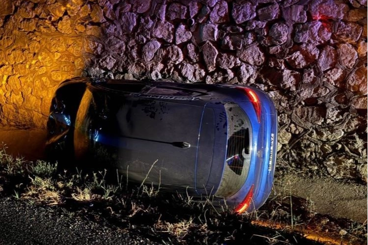 YAĞMUR SUYU KANALINA UÇTU, ARAÇ YAN YATTIŞiddetli çarpışmanın etkisiyle savrulan otomobil, yol kenarındaki yağmur suyu kanalına düştü. Ardından istinat duvarına çarpan araç yan yatarak durabildi. Hafif ticari araç ise kontrolden çıkarak yol kenarındaki bariyerlerin üzerine çıktı.