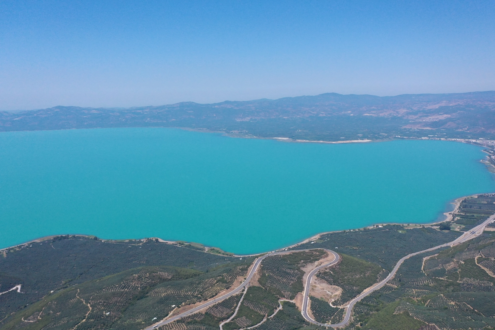 Marmara Bölgesi'nin en büyük, Türkiye'nin ise 5'inci büyük doğal gölü olan yaklaşık 300 kilometrekarelik İznik Gölü, son günlerde oluşan turkuaz rengiyle dikkati çekiyor.