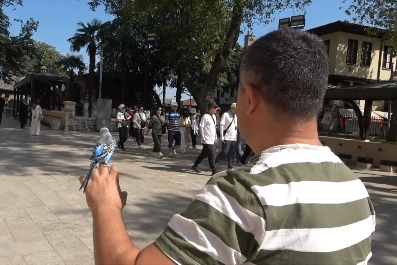 Bursa’da bir muhabbet kuşu, sahibinin omzunda tarihi Kapalı Çarşı’yı turlayarak hem esnafın hem de ziyaretçilerin ilgisini çekiyor. Murat Tekin isimli berberin “Müdür” adını verdiği kuş, hem dükkanın maskotu hem de çarşının neşesi haline geldi.