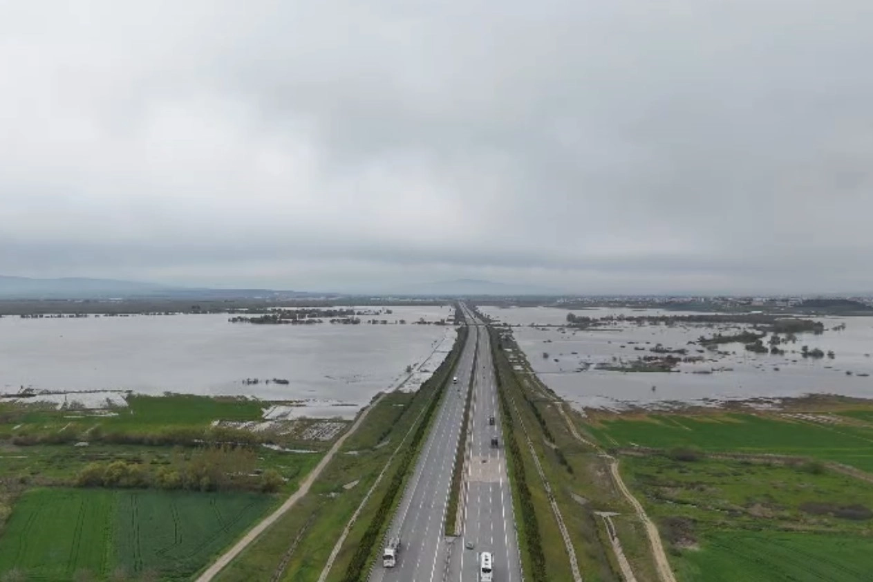 Karacabey Ovası’nı suyla kaplayan taşkın, Bursa-Bandırma otoyolunu da etkileyerek bölgeyi adeta ikiye ayırdı.