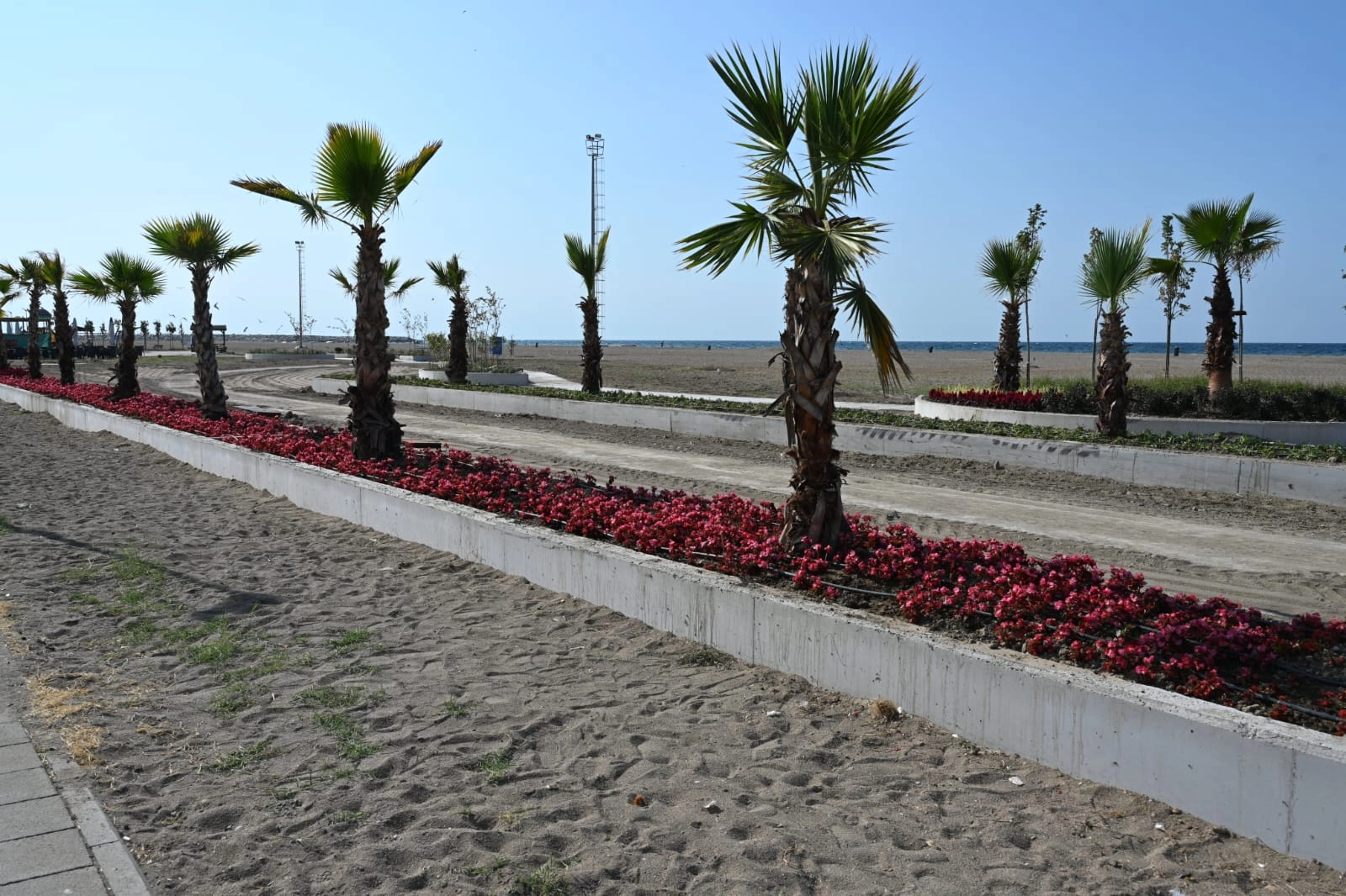 Park ve Bahçeler Müdürlüğü ekipleri tarafından sahil boyunca yürütülen peyzaj çalışmaları kapsamında 6 bin metrekarelik alan yeşillendirildi. Bölgede 700 metrelik yürüyüş yolu, 12 büyük beton saksı, 29 palmiye, 32 yapraklı ağaç, 1.000 çalı bitkisi, 35 bin 000 mevsimlik çiçek dikimi gerçekleştirildi. Ayrıca otomatik sulama sistemlerinin kurulumu tamamlanarak kalıcı yeşil alanlar oluşturuldu.