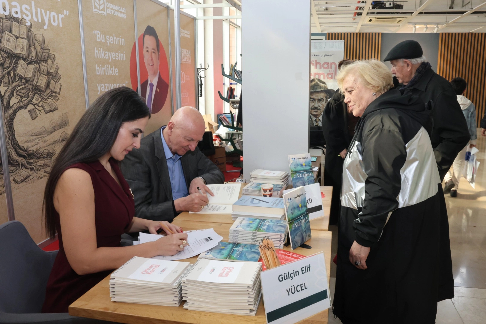 Osmangazi Belediyesi standına da uğrayan Işık Öğütçü, kitapseverlerle bir araya gelerek imza etkinliği gerçekleştirdi.