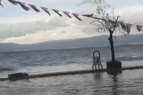 Alınan bilgiye göre, sabah saatlerinde etkili olan sağanak yağış Gemlik ilçesi Kurşunlu Sahili'nde denizin taşmasına sebep oldu. Dev dalgalar sahili döverken, deniz suyunun yükselmesi sonrası karayolu sular altında kaldı.