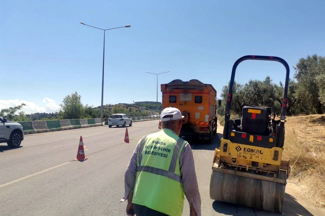 Bunun üzerine Bursa Büyükşehir Belediyesine bağlı yol yapım çalışmaları ekibi yola müdahale ederek yaklaşık 5 santimetre enindeki çatlakları dolgu ve asfaltlayarak kapadılar.