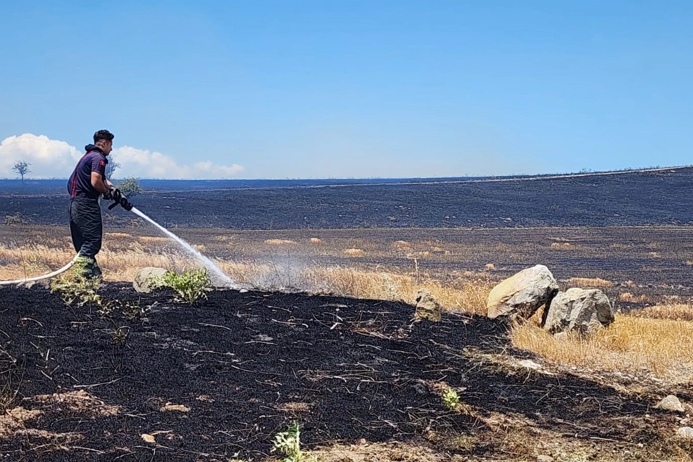 Rüzgarın etkisiyle hızla yayılan yangına, bölge halkı da müdahalede bulundu. Vatandaşlar, traktörleriyle tarlaları sürerek alevlerin yayılmasını engellemeye çalıştı. Yangının kontrol altına alınmasının ardından soğutma çalışmaları sürdürülüyor.