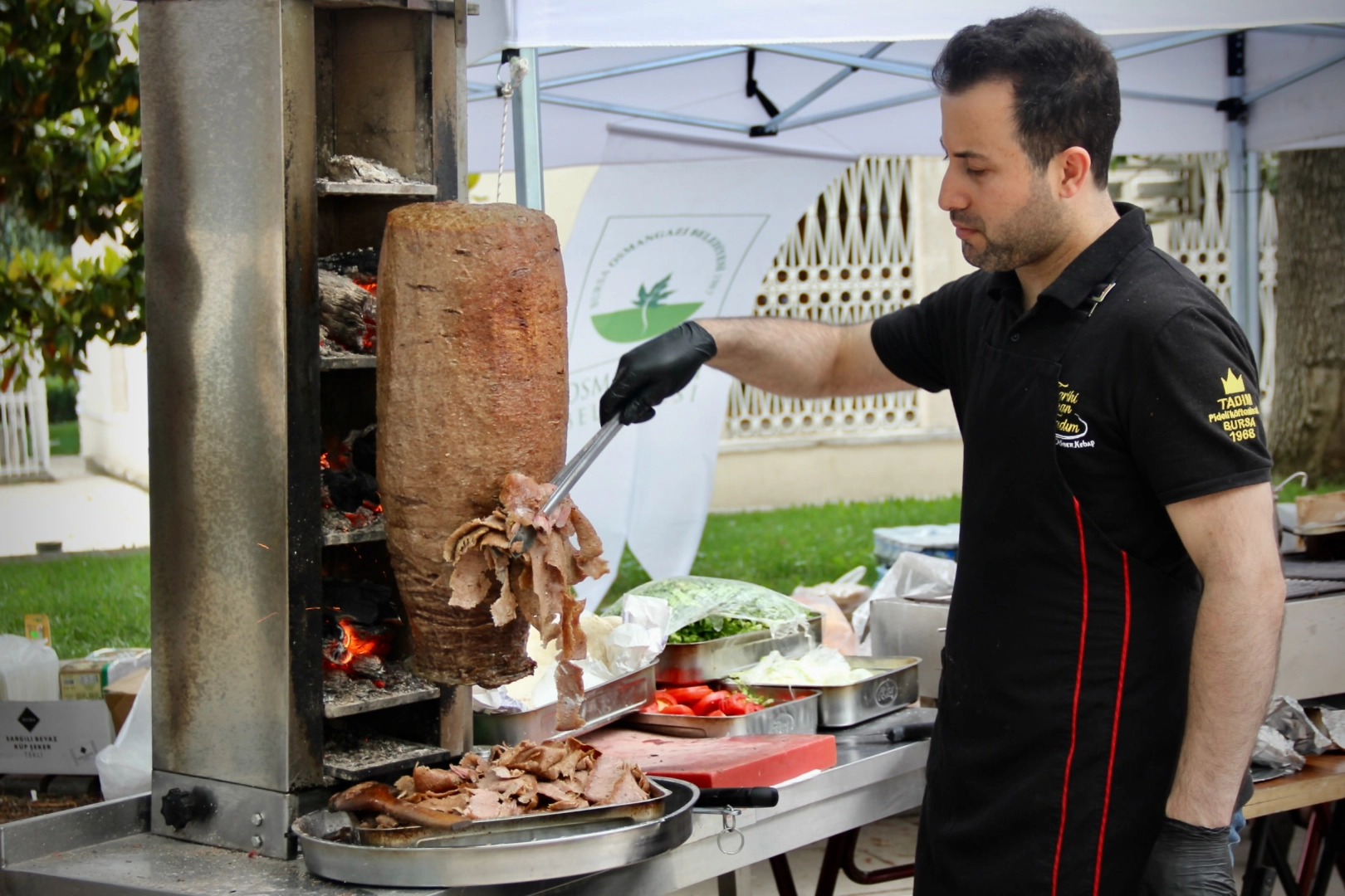 Tophane Meydanı'nda, Osmangazi Belediyesi organizasyonuyla gerçekleştirilen etkinlikte, katılımcılara Bursa döner kebabı, pideli köfte, cantık, süt helvası, hurma tatlısı sunuldu.