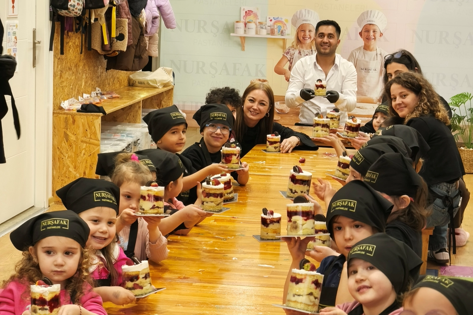 SOSYAL SORUMLULUK PROJELERİYLE ÖNE ÇIKIYORNurşafak Pastaneleri, lezzet üretiminin yanı sıra sosyal sorumluluk projeleriyle de dikkat çekiyor. Son olarak Yedi Vadi Okulları anaokulu sınıfında düzenlenen pasta yapma etkinliği, miniklere hem eğlenceli hem öğretici bir deneyim sundu.