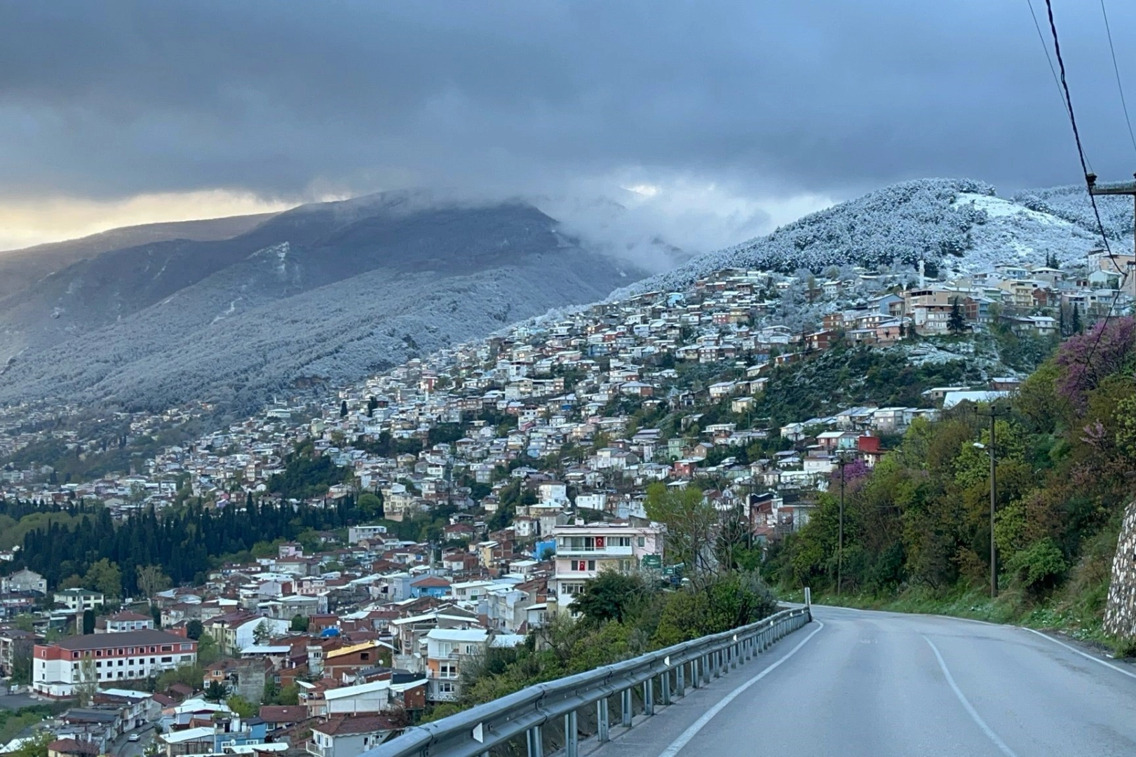 Bursa'da, Nisan ayında beklenmedik bir kar yağışı sabah saatlerinde sürpriz yaptı.