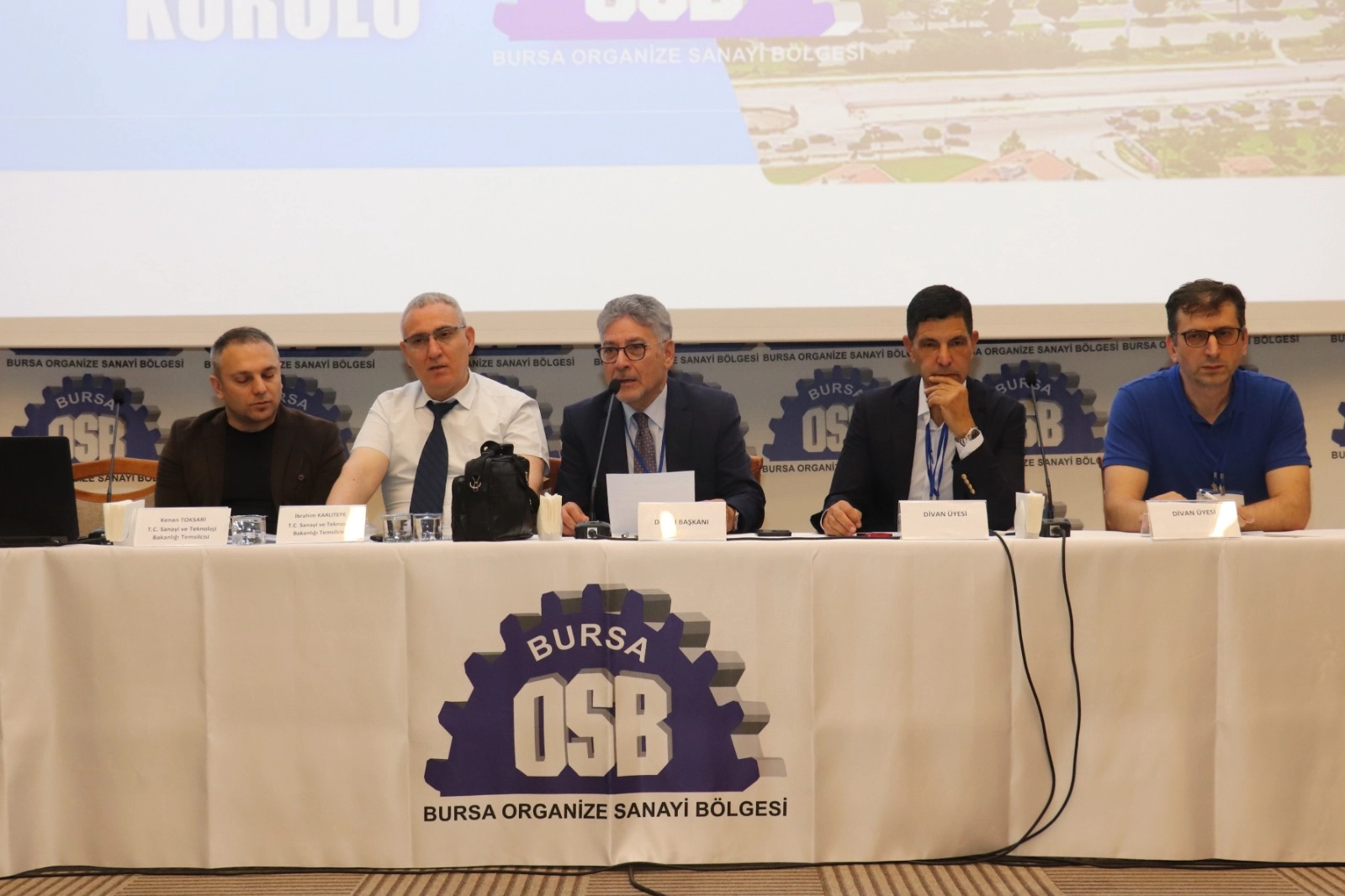 Abdullah Bayrak’ın Divan Başkanlığı, Özgür Şahin ile Rasim Çağan’ın da Divan Kurulu Üyeliği yaptığı Genel Kurulda Sanayi ve Ticaret Bakanlığı temsilcileri İbrahim Karlıtepe ve Kenan Toksari, Bursa OSB Bölge Müdürü Osman Yıldırım ve Bursa OSB üyeleri katıldı.