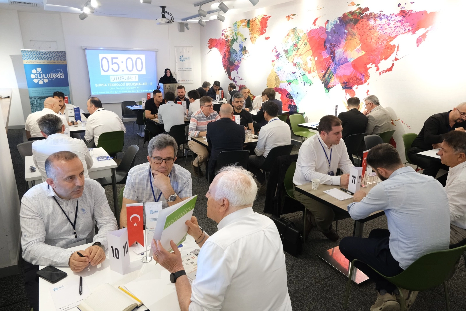 20 TEKNOLOJİ FİRMASI, 20 SANAYİ FİRMASIYLA BİREBİR GÖRÜŞTÜBuluşmaya, ULUTEK bünyesinde faaliyet gösteren 20 teknoloji firması ile Bursa'nın önde gelen 20 sanayi firması katıldı. Etkinlikte firmalar arasında, yazılım, otomasyon ve dijital dönüşüm konularında 5 dakikalık yüz yüze görüşmeler gerçekleştirildi. Bu sayede firmalar, ihtiyaçlarını doğrudan aktararak hızlı ve etkili iş birliği fırsatları yakaladı.