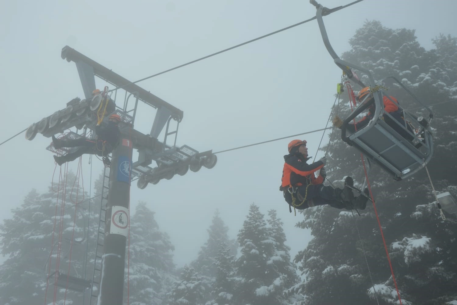 Kış turizminin gözde merkezlerinden Uludağ, sezon hazırlıklarına hız kesmeden devam ediyor. Teleferik ve telesiyejlerde olası mahsur kalma durumlarına karşı yapılan kurtarma tatbikatı, gerçeği aratmayan senaryolarla gerçekleştirildi.