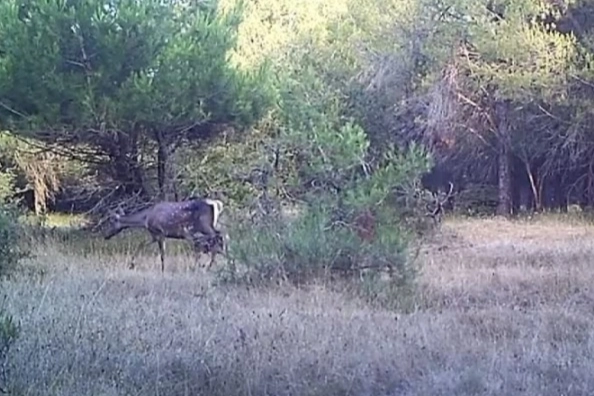 Ormanlık alanda ağaçların arasında yürüyen anne geyik ve yavrusunun görüntüsü, doğal yaşamın güzelliğini bir kez daha gözler önüne serdi. Fotokapana yansıyan karelerde yavru geyiğin benekli kürkü ve annesinin koruyucu tavırları dikkat çekti.
