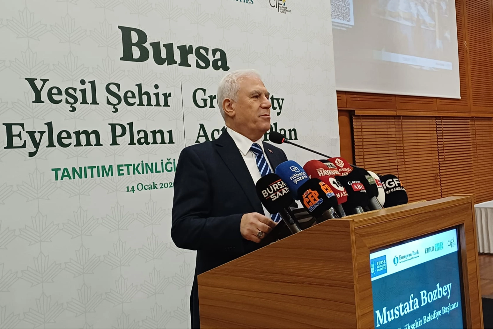Avrupa İmar ve Kalkınma Bankası (EBRD) Yeşil Şehirler Programı kapsamında hazırlanan “Bursa Yeşil Şehir Eylem Planı”, düzenlenen toplantıyla kamuoyuna tanıtıldı. Açılış konuşmasını yapan Bursa Büyükşehir Belediye Başkanı Mustafa Bozbey, planın yalnızca teknik bir belge olmadığını, yenilenen ve yeşil Bursa hedefinin somut karşılığı olduğunu vurguladı.