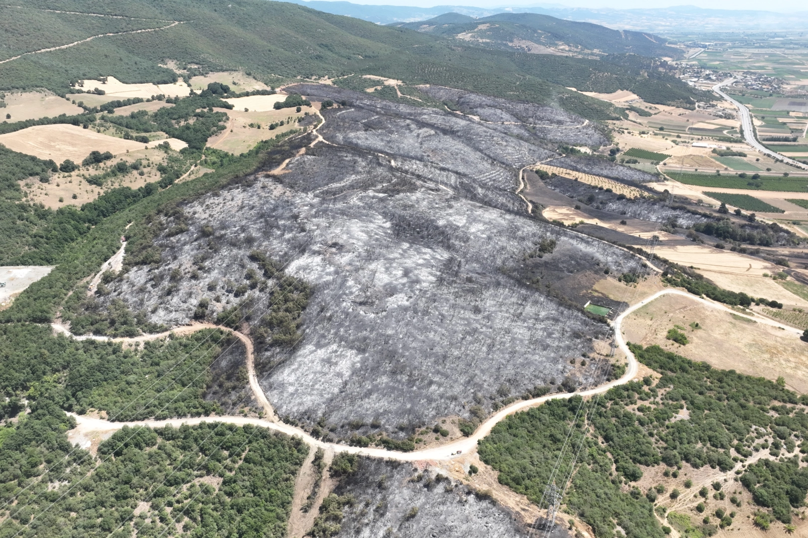Gündüz saatlerinde drone ile havadan çekilen görüntüler, felaketin boyutunu bir kez daha gözler önüne serdi. Yaklaşık 500 futbol sahası büyüklüğündeki yeşil alanın tamamen siyaha büründüğü görüntüler, yangının doğaya verdiği tahribatı net bir şekilde ortaya koydu.