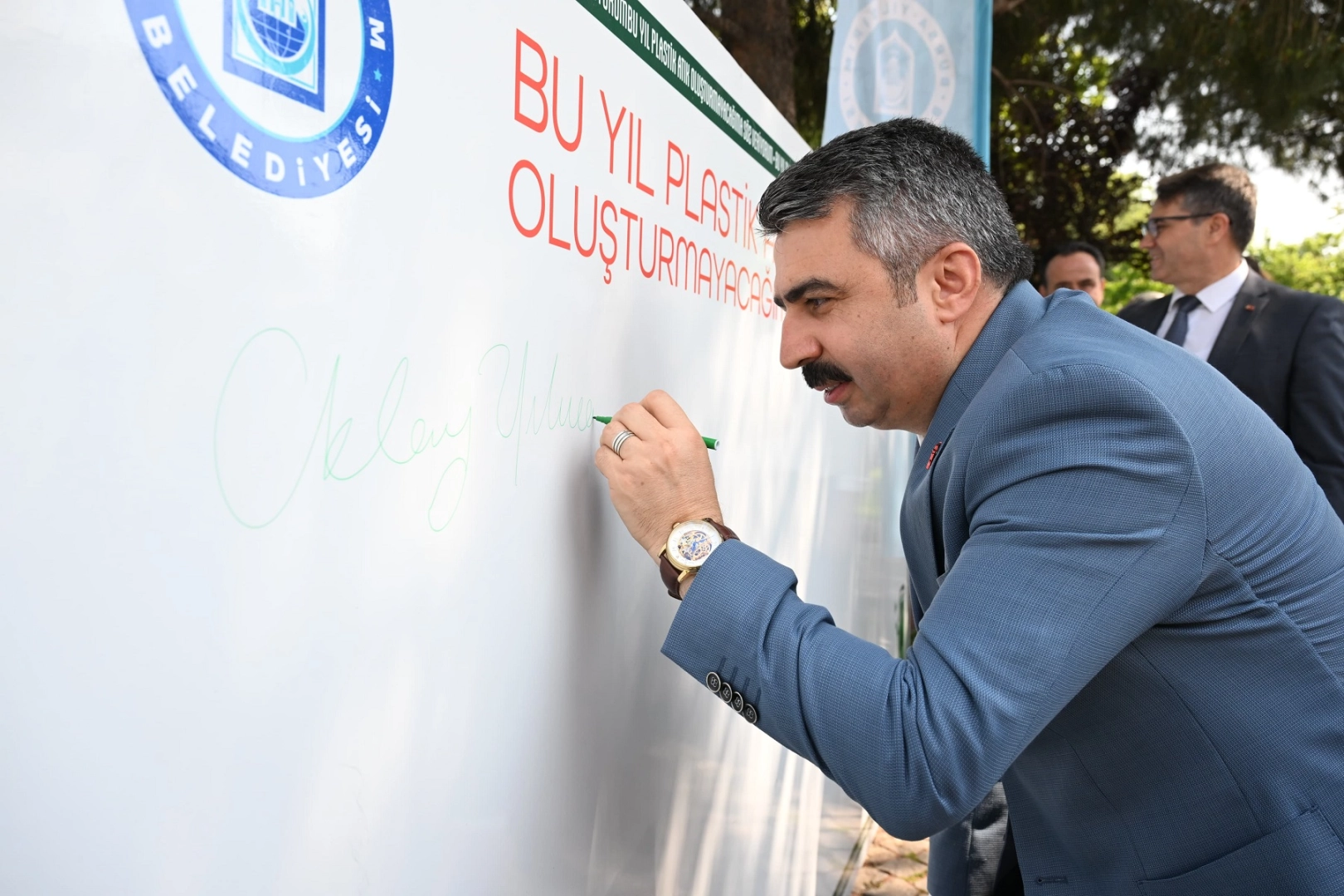 Etkinlik sonunda, çevre gönüllüleri, öğrenciler, öğretmenler ve protokol üyeleri, “yıl boyunca plastik atık oluşturmama” sözü verdikleri taahhüt metnini imzaladı.