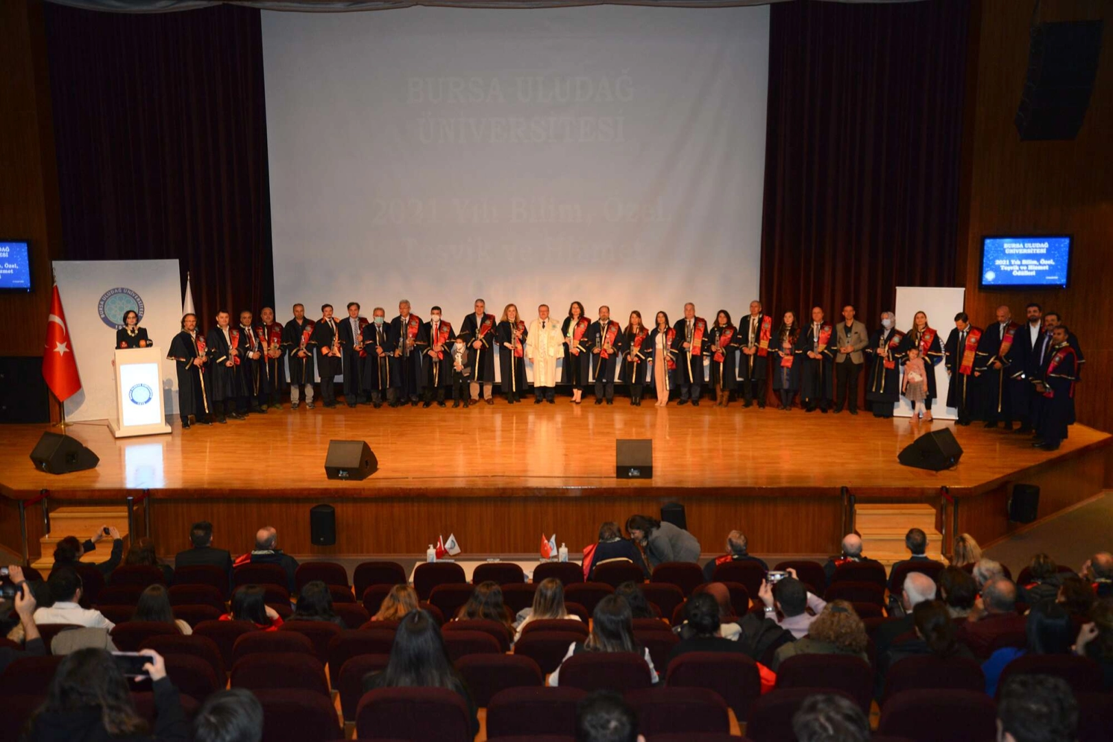 BUÜ’de görev yapan akademisyen ve idari personelin 2021 yılında gerçekleştirdiği projeler ve çalışmalar arasında yapılan değerlendirmeler neticesinde; 'Bilim', 'Özel', 'Teşvik' ve 'Hizmet' başlıkları altında ödüller dağıtıldı. Prof. Dr. Mete Cengiz Kültür Merkezi'nde gerçekleştirilen törende yılın en başarılı akademisyen ve idari personeline ödülleri takdim edildi.