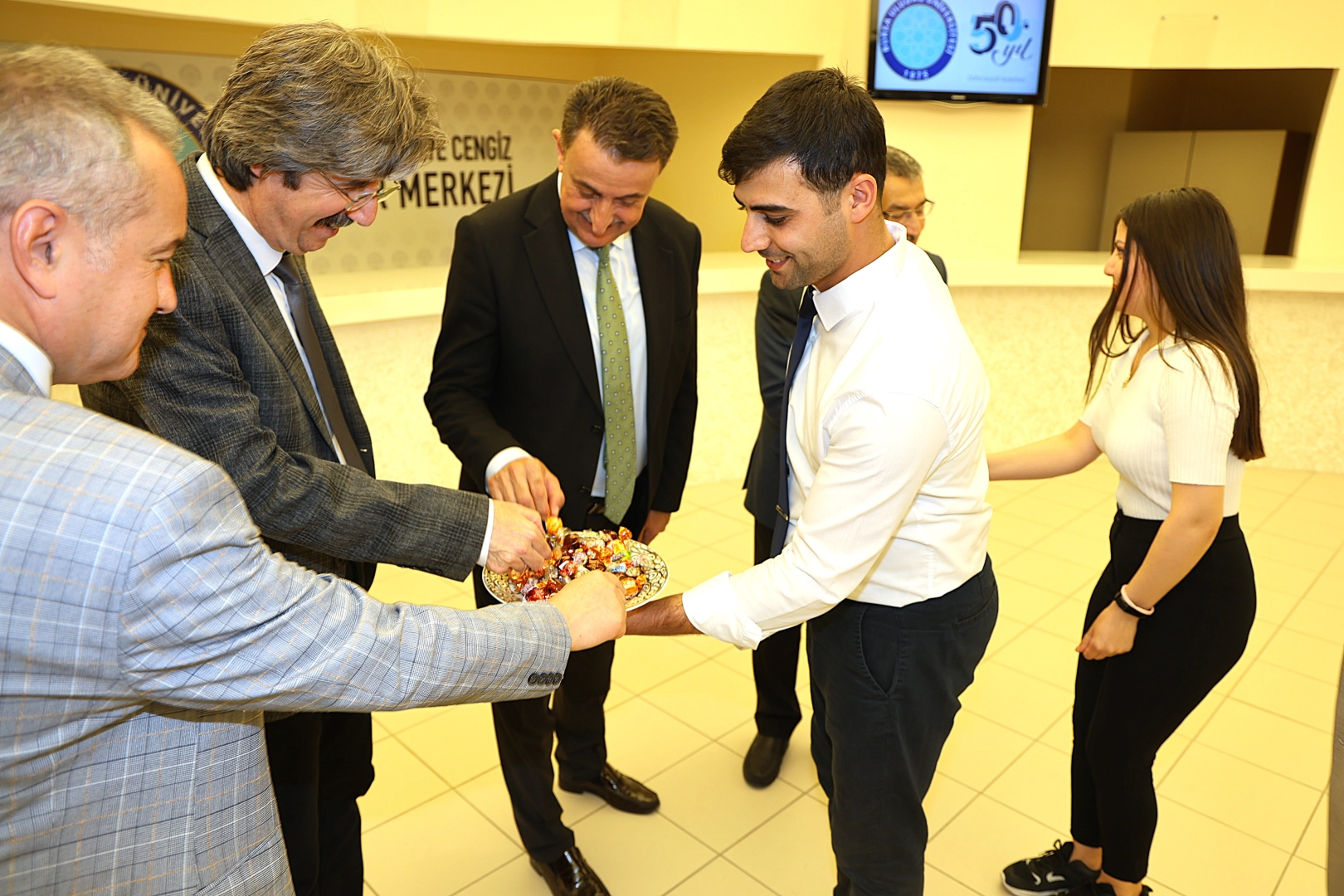 TÜM PERSONELLE BAYRAMLAŞMAKonuşmanın ardından Rektör Yılmaz ve beraberindeki yöneticiler, alandaki tüm personelle tek tek bayramlaştı. Güler yüzlü karşılamaların ve samimi sohbetlerin yaşandığı törende, üniversite çalışanları da bayram öncesi moral buldu.
