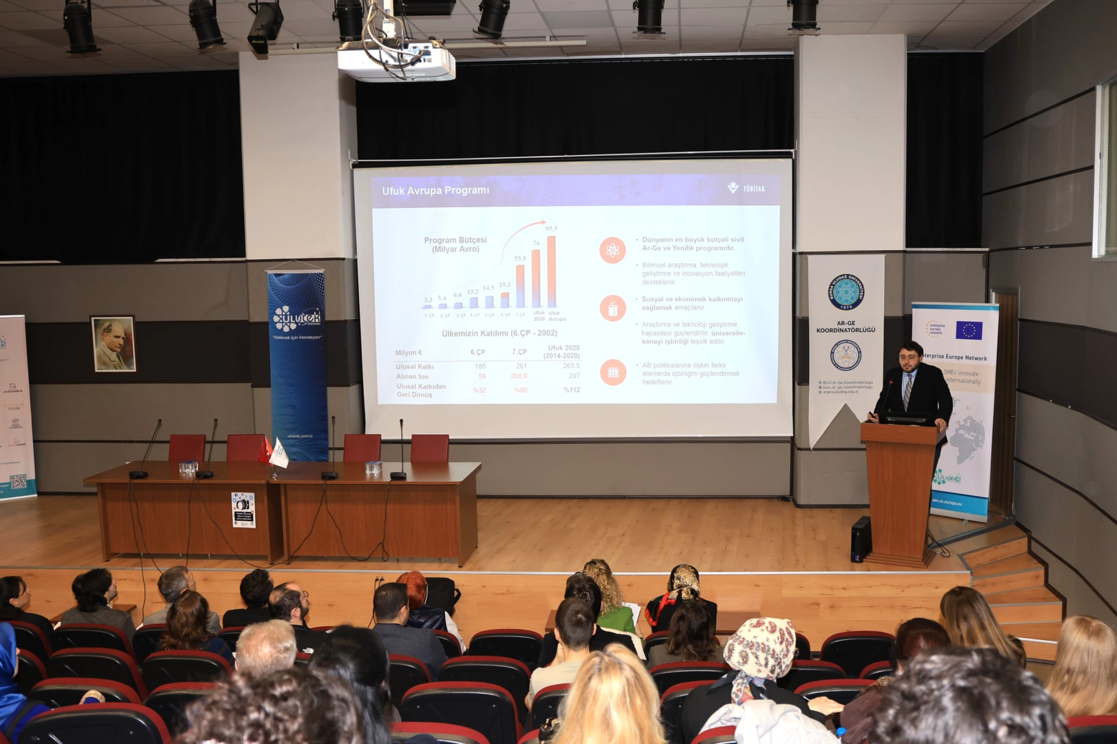 Marie Skłodowska-Curie Actions (MSCA) çerçevesinde sunulan burs ve hareketlilik imkanlarının detaylandırıldığı etkinlikte, akademisyenlerin küresel araştırma ağlarına katılım stratejileri ele alındı.