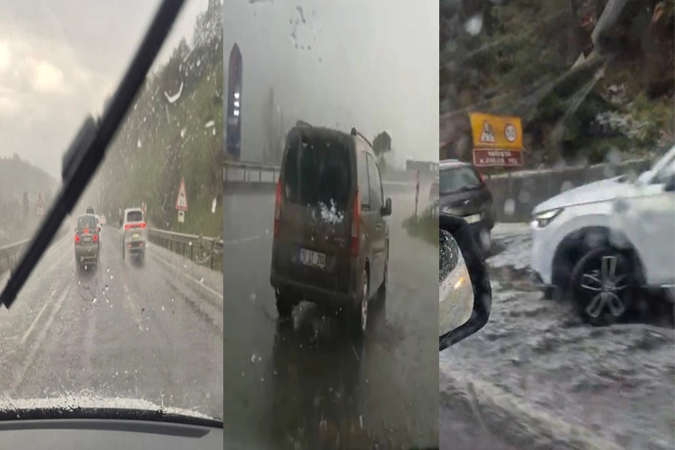 Bursa-Ankara karayolunun Kestel ilçesi Ümitalan rampası mevkiinde etkili olan yoğun dolu yağışı, sürücülere zor anlar yaşattı.