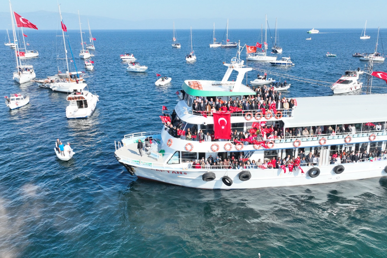 Mudanya Kaymakamı Ayhan Terzi, Mudanya Belediye Başkanı Deniz Dalgıç ve ilçe protokolü, gemilere binerek deniz araçlarının gösterisini izledi. Bayraklarla süslenen tekneler, mavi sular üzerinde görsel bir şölen sunarken, vatandaşlar da teknelerde ve sahilde ellerinde bayraklarla korteje eşlik etti.